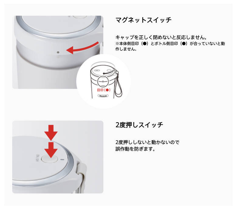 ビタントニオ マイボトルブレンダー (ミル付) 販売価格 7,700 円 (税込) 商品コード2位 ビタントニオ ブレンダー ミキサー ジューサー 粉末 パウダードリンク スムージー 離乳食 氷も砕ける マイボトル ミニブレンダー グリーンスムージー 便利グッズ 朝食 ギフト 新生活ポイント10倍 送料無料 Vitantonio マイボトルブレンダー VBL50 4,378円マイボトルブレンダーシリーズ ※2cm角以下の氷を使用してください 追加ボトルセットのご購入は コチラのWEBショップから。 仕様 品名 ビタントニオ ミニボトルブレンダー